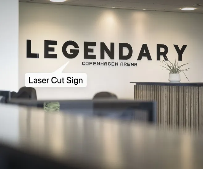Razor-sharp logos, directional signs, and stage branding cut from acrylic, wood, and metal.